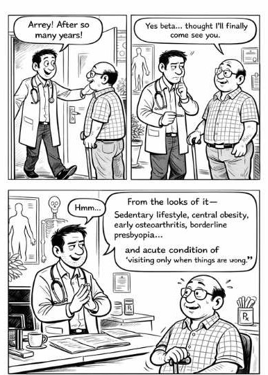 This is where family medicine stands apart. We practise in homes, not just hospitals. We see lab reports in the context of kitchens, finances, family dynamics, and fear. We know that a "borderline" value in a single mother working night shifts is not the same as the same value in a retired executive with a personal chef and a smartwatch.